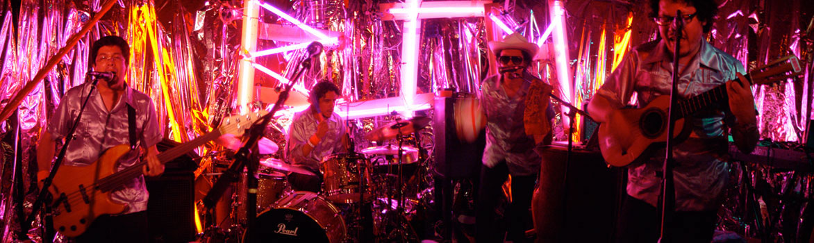 "Bachelor Sound Machin, The Delancey, New York," 2007 In loving memory of René Peñaloza-Galvan (lead singer, far right). My life is warmed forever by his sunshine, his music, his great writing and films, his humor, and most especially his wonderful friendship. |
